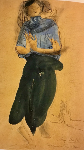 Work on this post has proceeded slowly, but since learning that Auguste Rodin had witnessed Cambodian dancers perform at Marseilles on the occasion of the Colonial Exposition of 1906 in that city, I'd decided to look into it and pick out some threads to follow. I hadn't known that Rodin had been exposed to this deeply affecting cultural tradition; prior to that serendipitous encounter at Marseilles he had no knowledge of it. Moved and inspired, the great artist made a number of pencil sketches of the dancers in situ, applying color afterward. I gather that Rodin made more than 30 drawings of the dancers, along with several portraits of King Sisowath: members of the dance troupe were part of an extensive entourage accompanying the Cambodian king on his official visit to France that year.